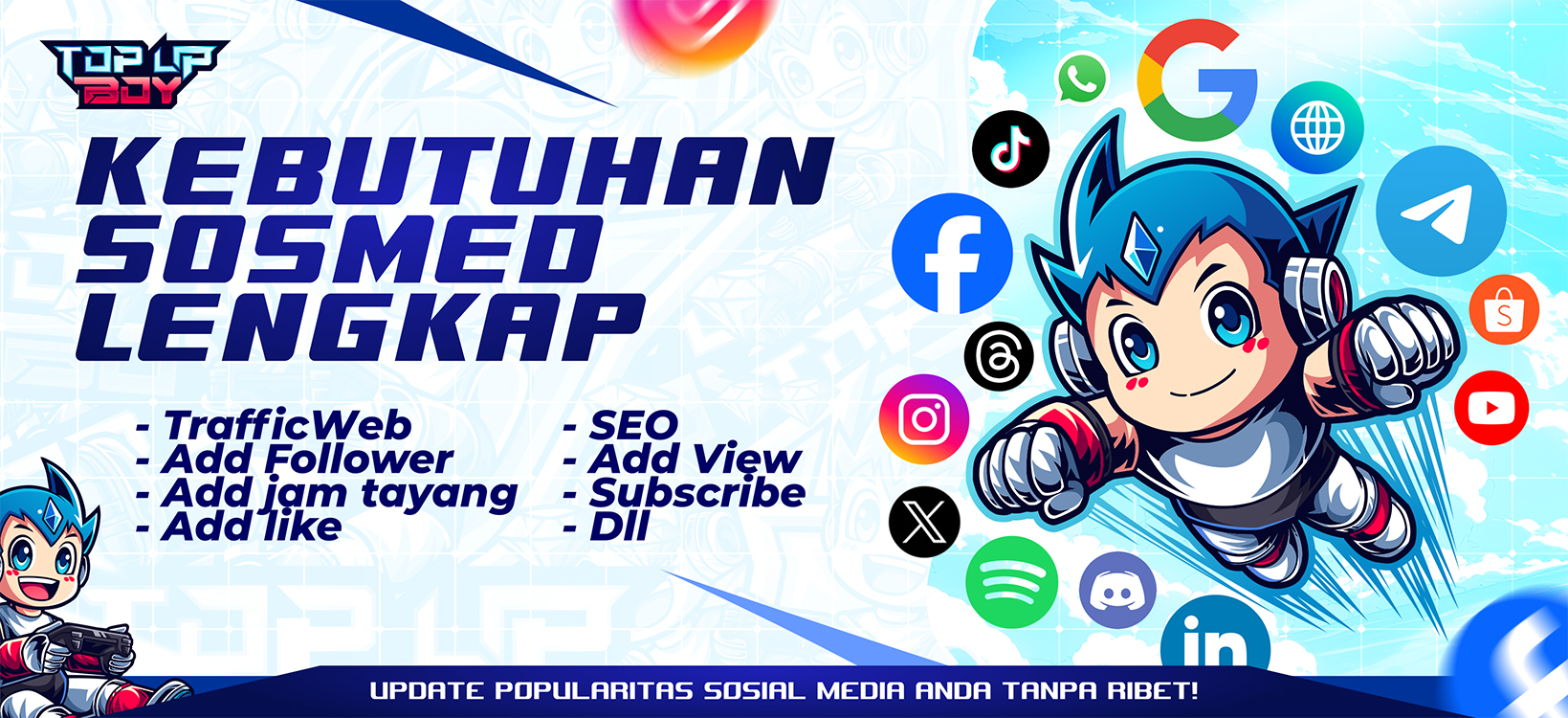 Top Up Boy adalah platform yang melayani jasa top up game dengan harga yang murah dan transaksi yang cepat. Kami menyediakan layanan top up yang profesional dengan transaksi yang aman, proses instan, terpercaya, legal dan ada garansi uang kembali!